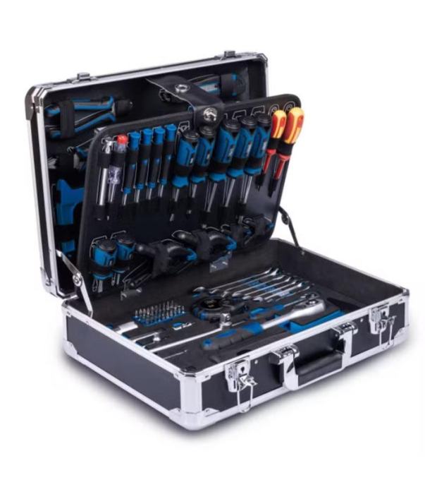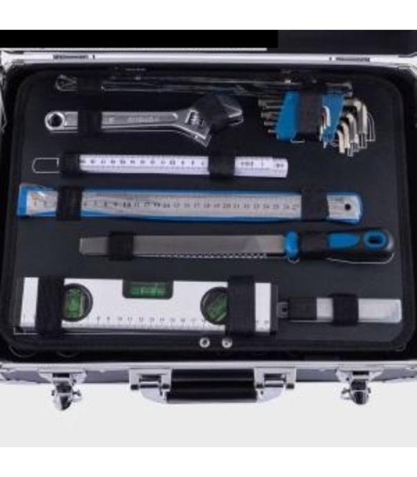 • Priloženi so kombinirani ključi, izvijači, kladivo, delavniška pila, natančna vodna tehtnica, tester, klešče, meter, LED svetilka, žaga, raglja...