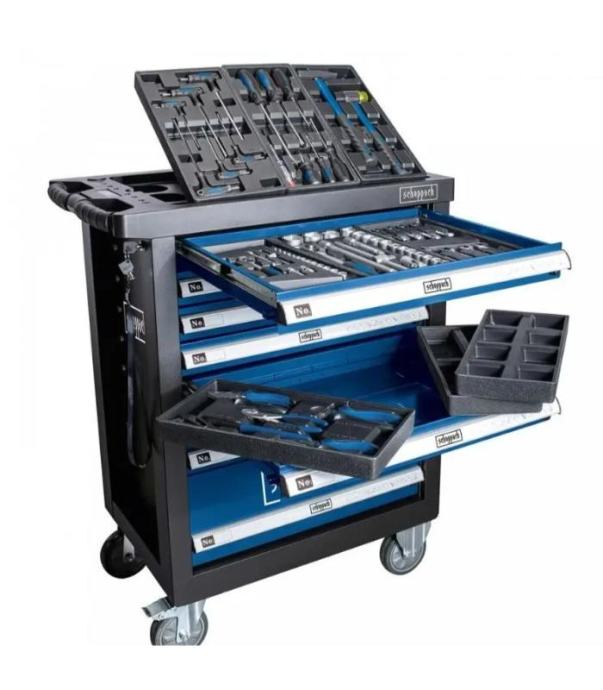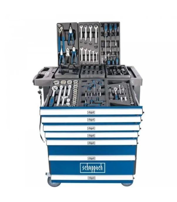 SCHEPPACH TW1100 Voziček za orodje, 7 predalov, s 70-delnim setom orod