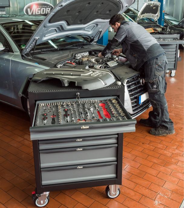 Vigor V2712N voziček s kvalitetnim ročnim orodjem – 228 kosov