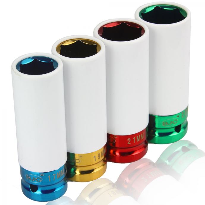 Profesionalne udarne vtičnice, zasnovane za varno odvijanje alu platišč – imajo OBLOGO, ki ščiti platišče pred praskami in poškodbami.