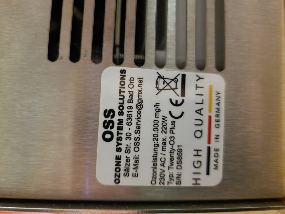 Prodam profesionalni generator ozona OSS z vgrajeno UV žarnico izdelan v Nemčiji.