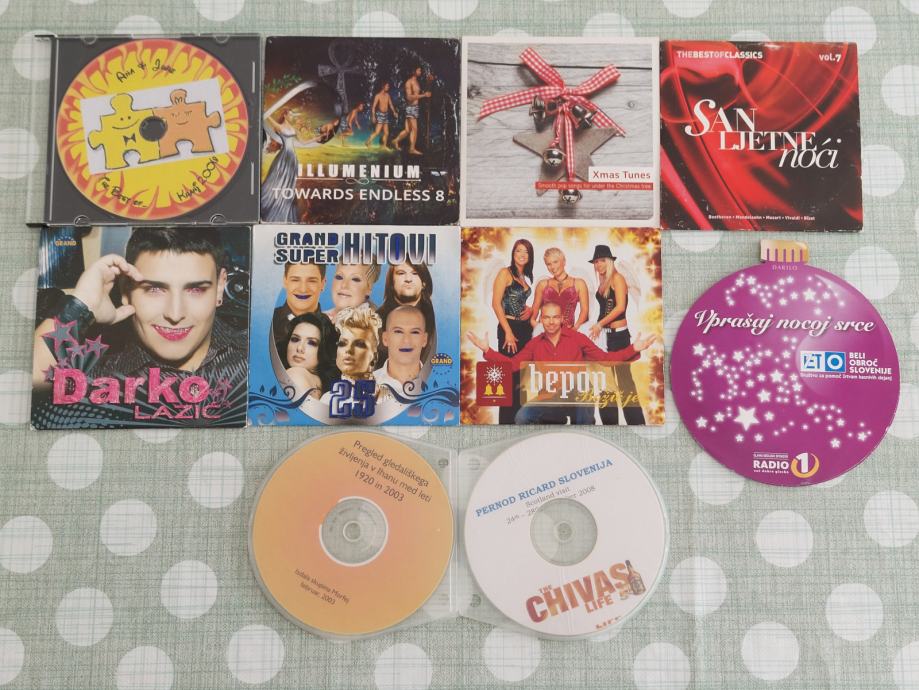 Prodam ohranjene cd-je.V škatlici je več cd.jev.Vsak cd stane 1 euro.Če so v škatlici 3 cd.ji,stane ta škatlica s cd.ji , 3 eure.