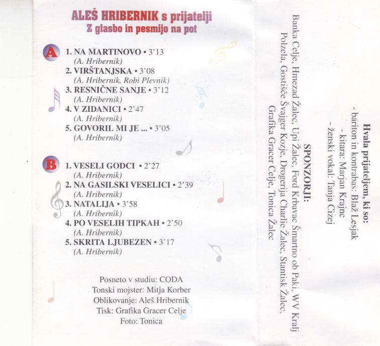 kaseta ALEŠ HRIBERNIK S PRIJATELJI - Z GLASBO IN PESMIJO NA POT