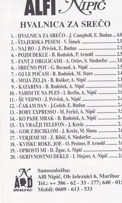 kaseta ALFI NIPIČ - HVALNICA ZA SREČO