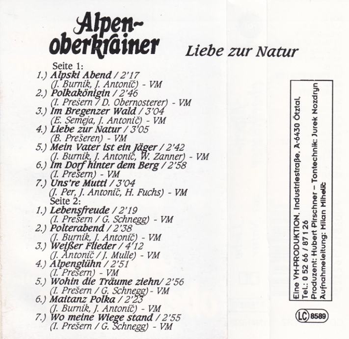 kaseta ALPSKI KVINTET - LIEBE ZUR NATUR