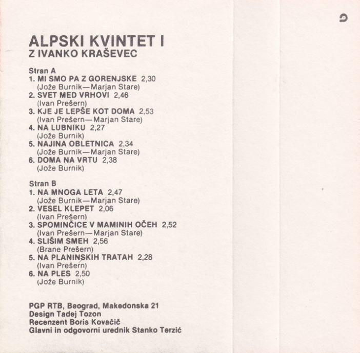 kaseta ALPSKI KVINTET - MI SMO PA Z GORENJSKE 1