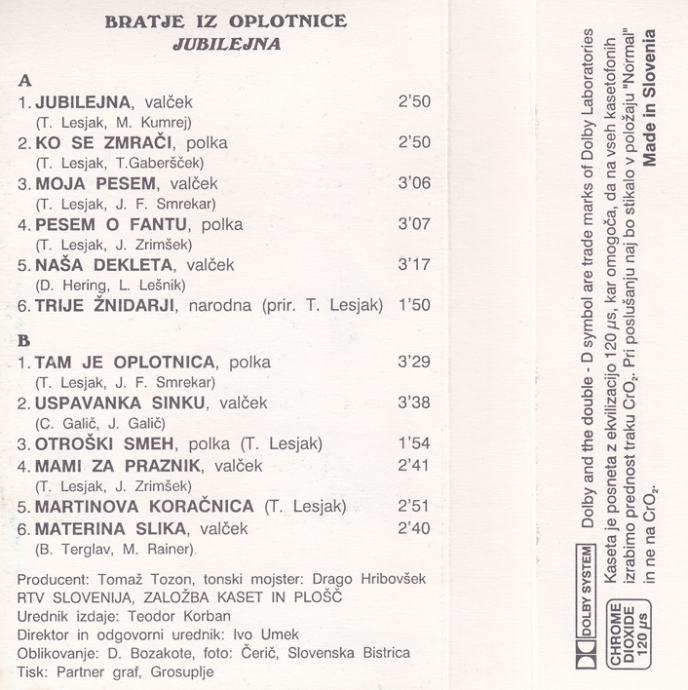 kaseta ANSAMBEL BRATJE IZ OPLOTNICE - JUBILEJNA