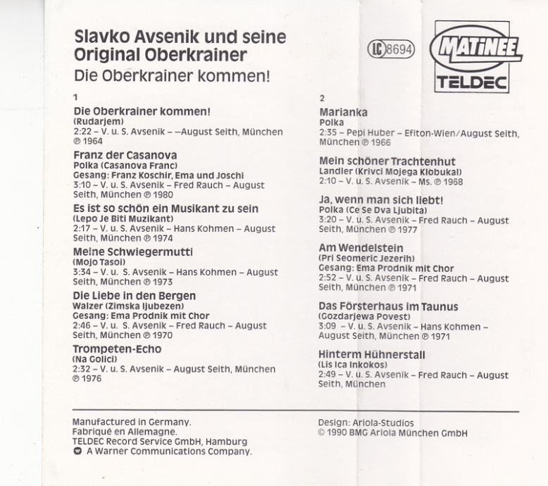 kaseta ANSAMBEL bratov Avsenik Die Oberkrainer Kommen