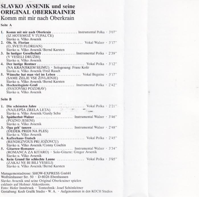 kaseta ANSAMBEL bratov Avsenik - Komm mit mir nach Oberkrain