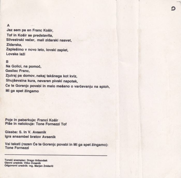 kaseta ANSAMBEL bratov Avsenik - Košir pa Tof z Avseniki