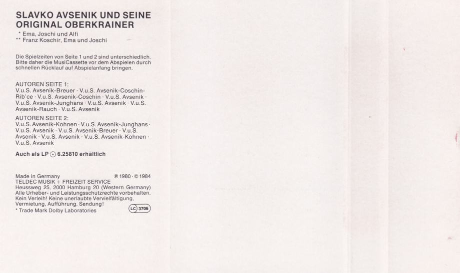kaseta ANSAMBEL bratov Avsenik - Musik ist mein Leben