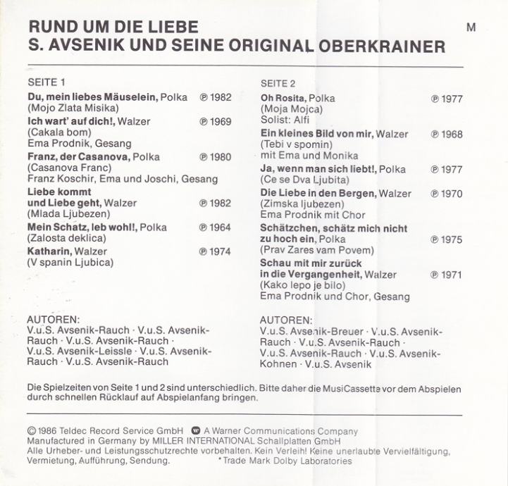 kaseta ANSAMBEL BRATOV AVSENIK - RUND UM DIE LIEBE