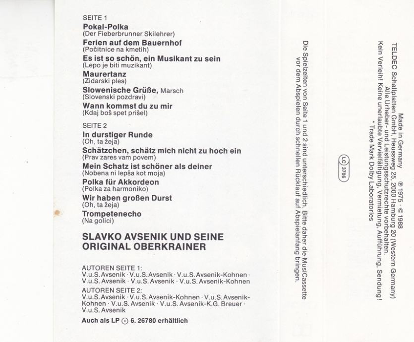 kaseta ANSAMBEL BRATOV AVSENIK - SONNTAGSKONZERT