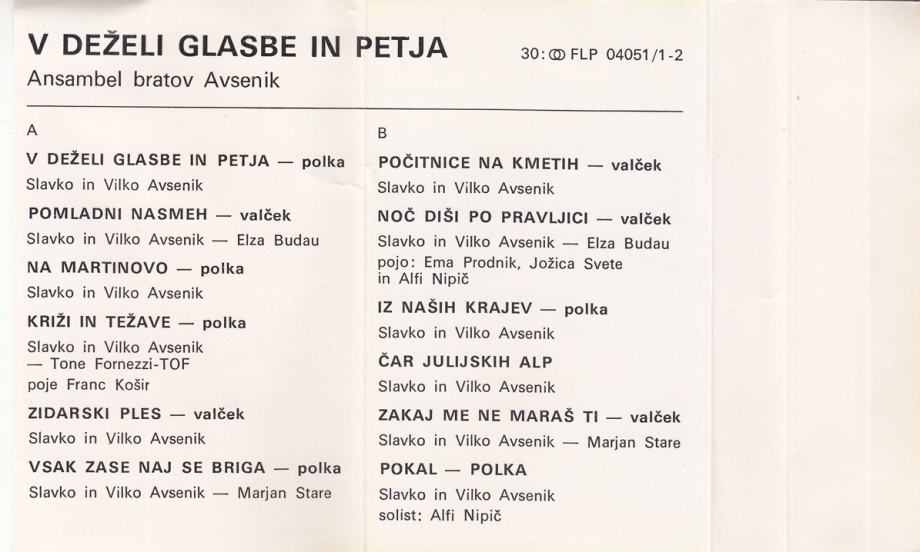 kaseta ANSAMBEL BRATOV AVSENIK - V DEŽELI GLASBE IN PETJA 1