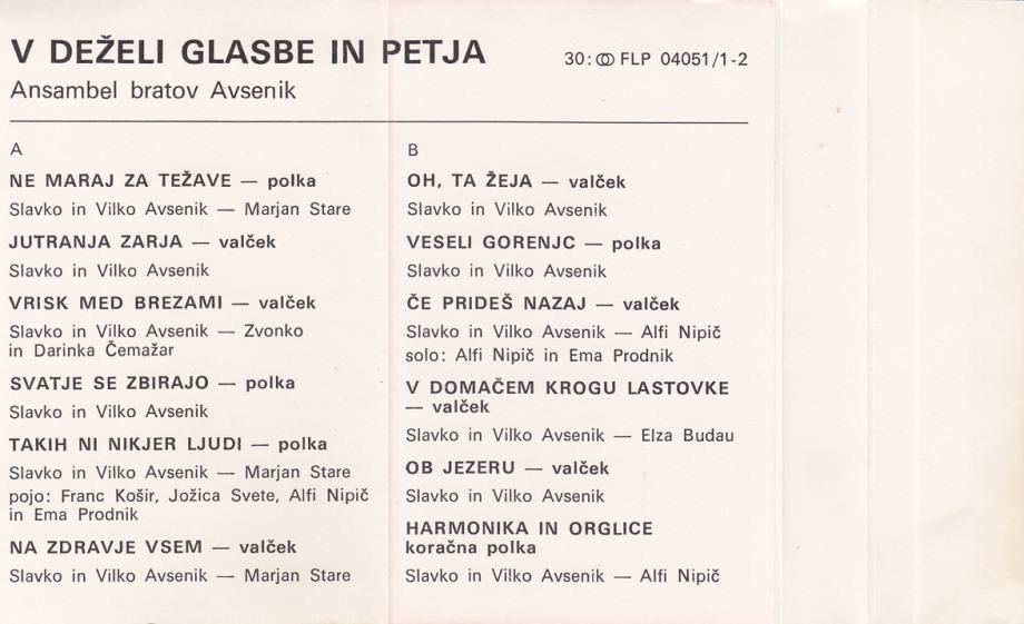 kaseta ANSAMBEL BRATOV AVSENIK - V DEŽELI GLASBE IN PETJA 2