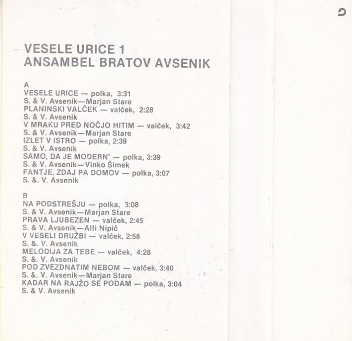 kaseta ANSAMBEL BRATOV AVSENIK - VESELE URICE 1