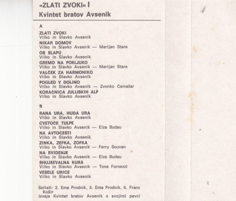 kaseta ANSAMBEL BRATOV AVSENIK - ZLATI ZVOKI 1