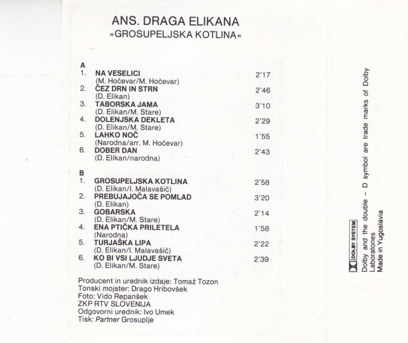 kaseta ANSAMBEL DRAGA ELIKANA - GROSUPELJSKA KOTLINA