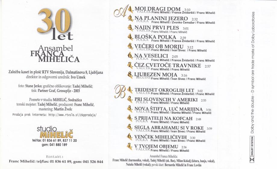 kaseta ANSAMBEL Franca Miheliča Moj dragi dom