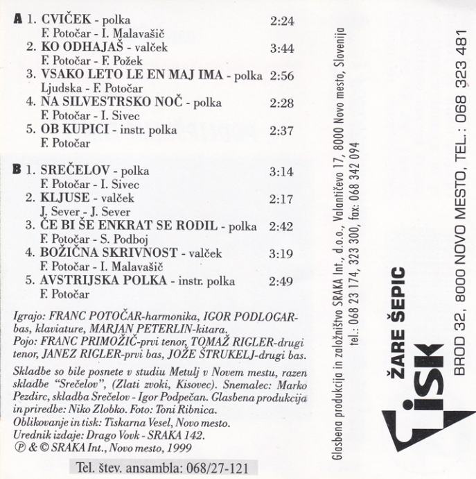 kaseta Ansambel Franca Potočarja s Podlipiškimi fanti - Ko Odhajaš