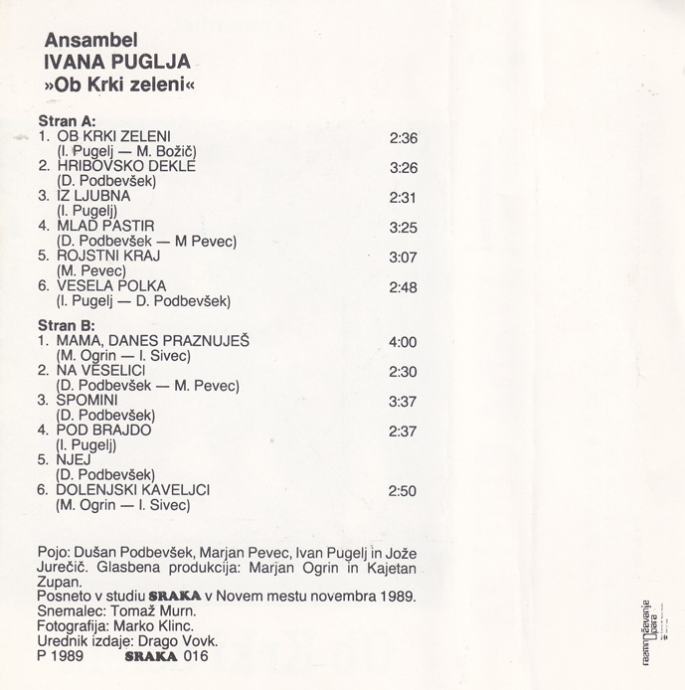 kaseta ANSAMBEL Ivana Puglja - Ob Krki zeleni