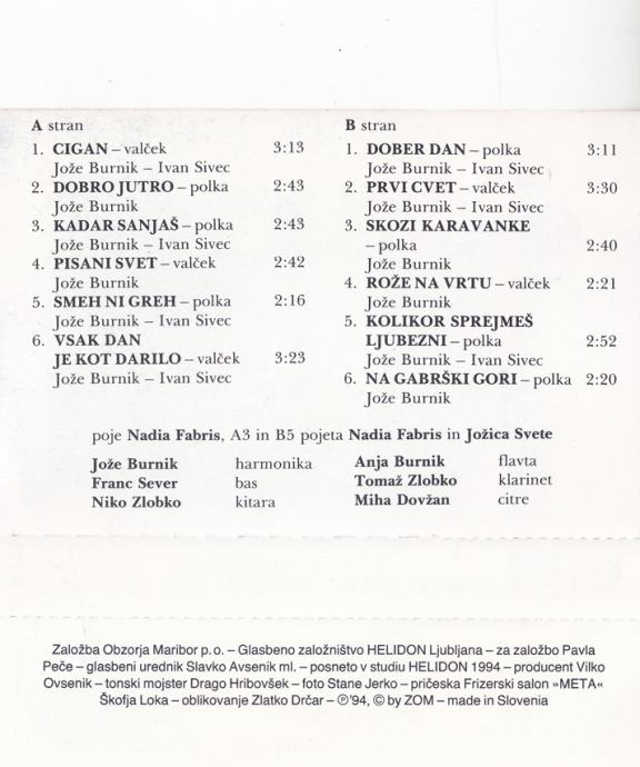 kaseta ANSAMBEL Jožeta Burnika - Dobro jutro, dober dan, cigan!
