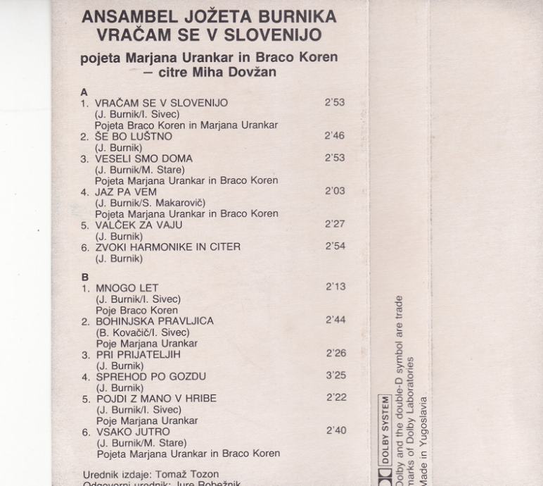 kaseta ANSAMBEL Jožeta Burnika - Vračam se v Slovenijo