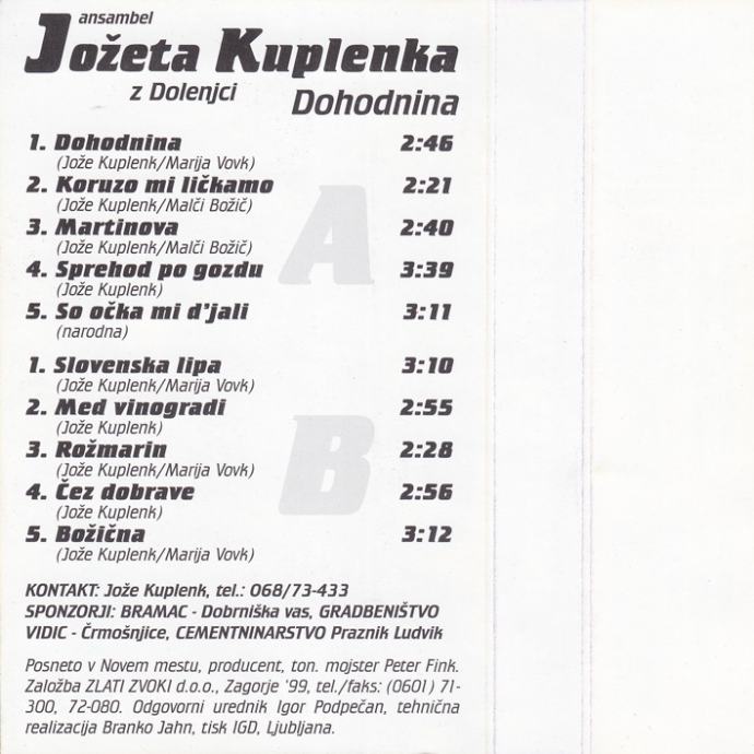 kaseta ANSAMBEL Jožeta Kuplenka - Dohodnina