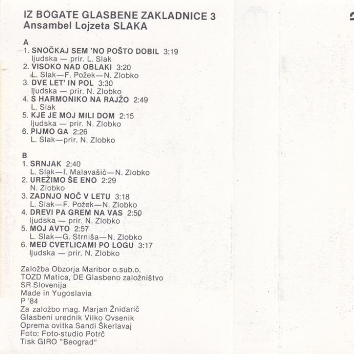 kaseta ANSAMBEL Lojzeta Slaka - Iz bogate glasbene skrinje 3