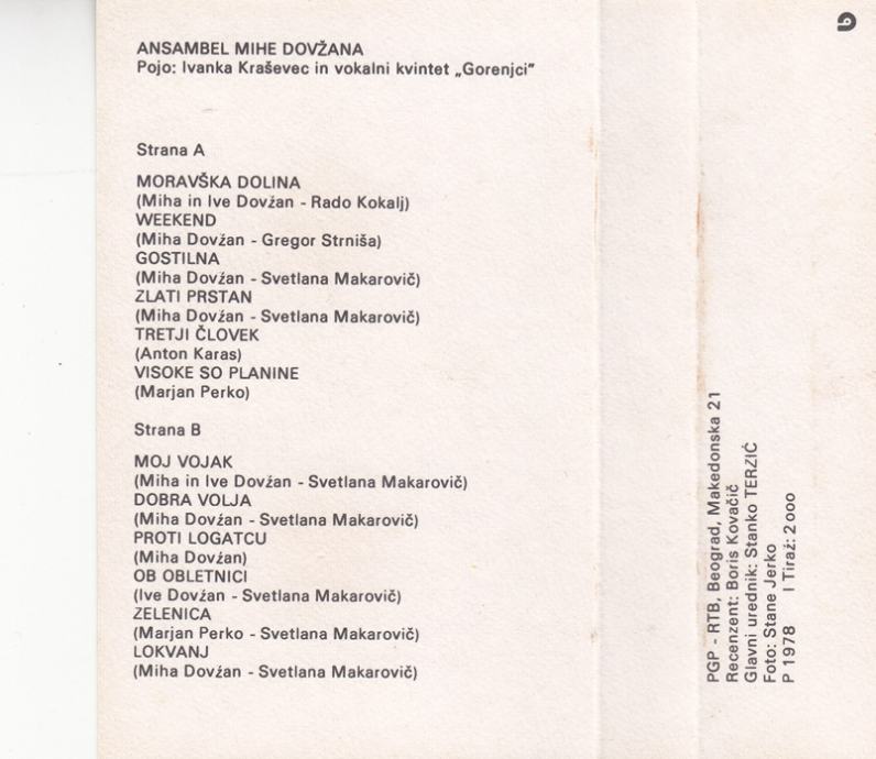 Ansambel Mihe Dovžana - Moravska dolina (bel label)