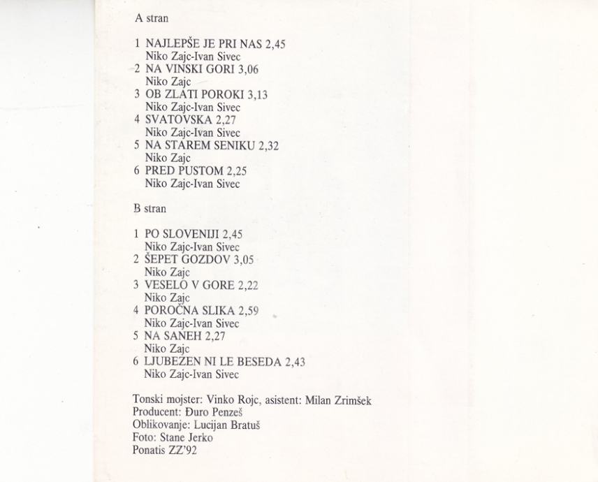 kaseta ANSAMBEL Nika Zajca - Najlepše je tu pri nas