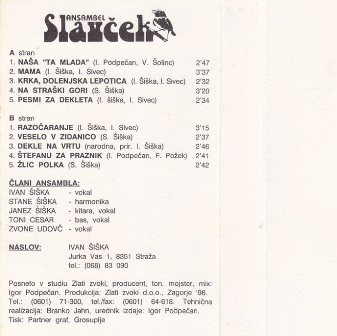 kaseta ANSAMBEL Slavček - Naša ta mlada
