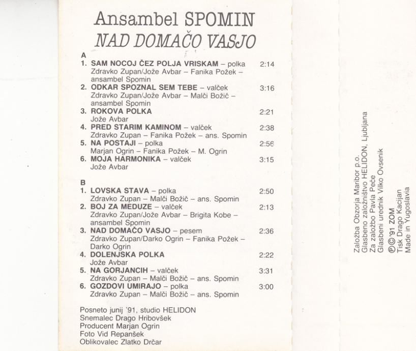 kaseta ANSAMBEL Spomin - Nad domačo vasjo