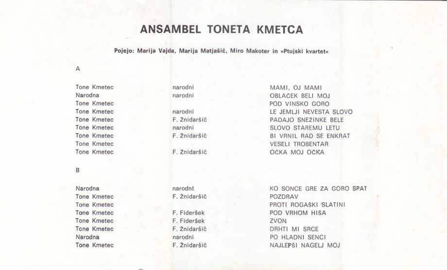 kaseta ANSAMBEL Toneta Kmetca - Mami, oj mami