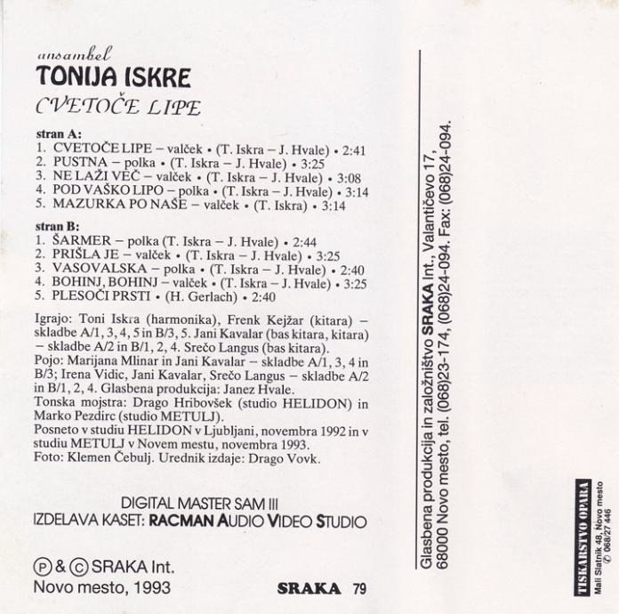 kaseta ANSAMBEL Tonija Iskre - Cvetoče lipe