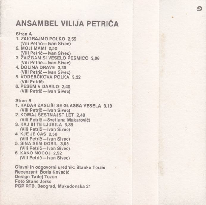 kaseta ANSAMBEL Vilija Petriča - Zaigrajmo polko