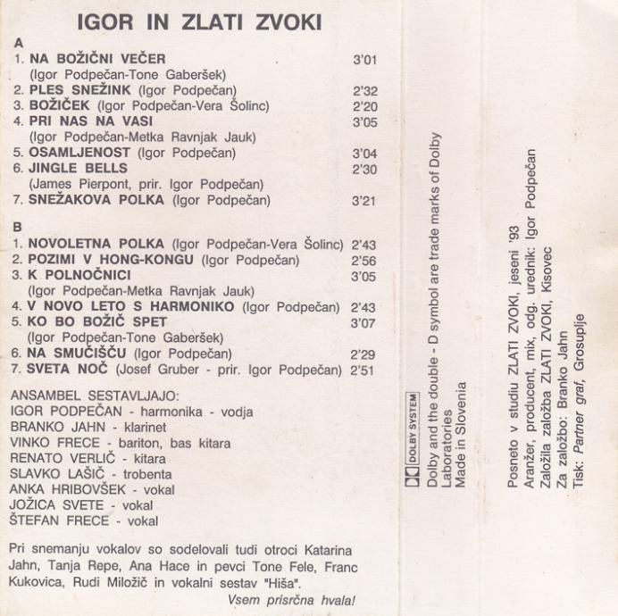 kaseta Igor in Zlati zvoki - Božične in novoletne pesmi