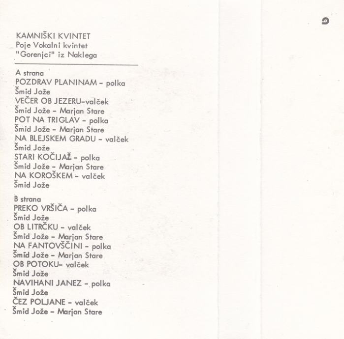 kaseta Kamniški kvintet - Pozdrav planinam