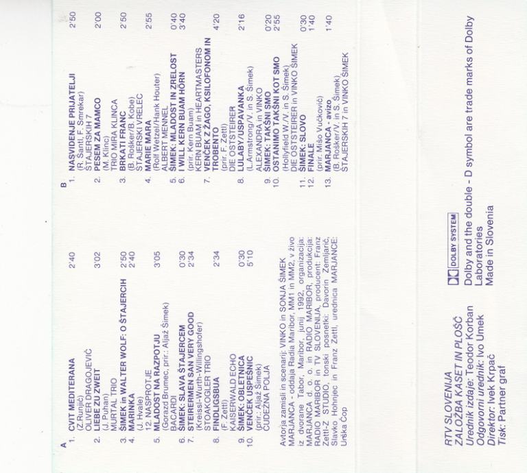 kaseta Kompilacija - Marjanca in Vinko Šimek, Mednarodna parada domači