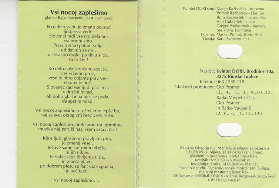 kaseta Kvintet Dori - Dori naše je ime