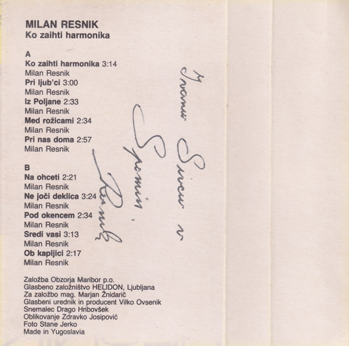 kaseta Milan Resnik - Ko zaihti harmonika