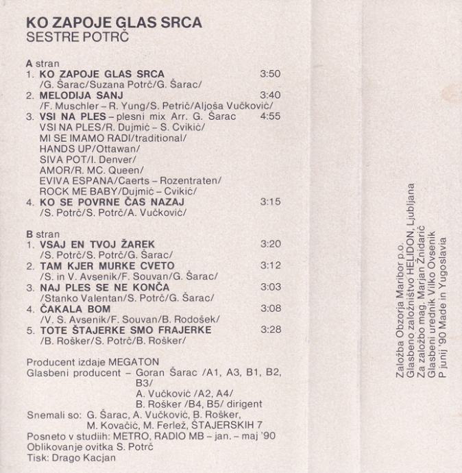 kaseta Sestre Potrč - Ko zapoje glas srca