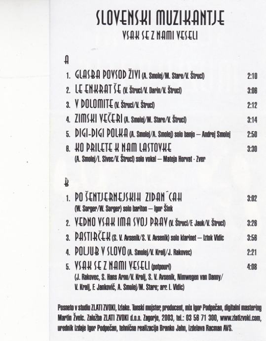kaseta Slovenski muzikantje - Vsak se z nami veseli