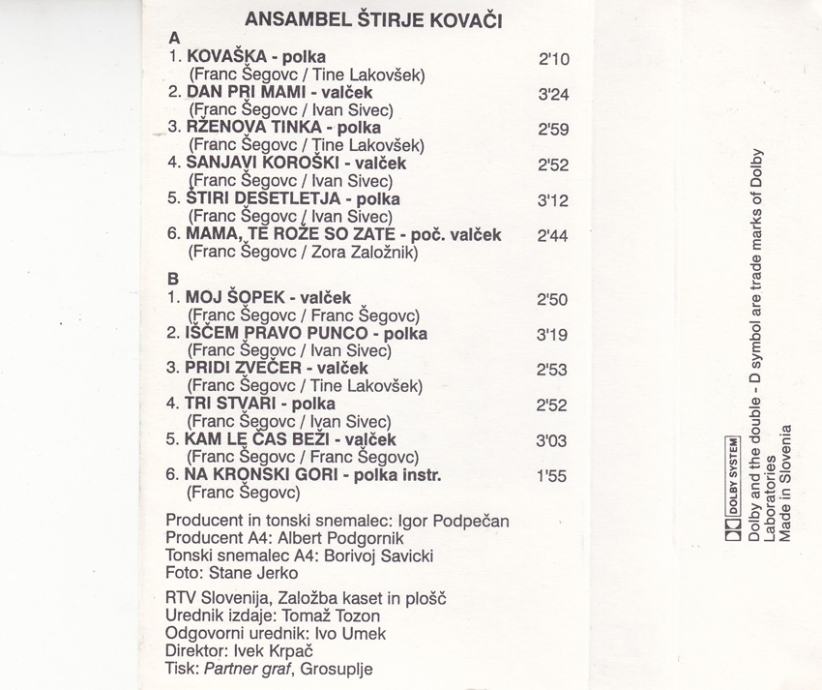 kaseta Štirje kovači - 40 let