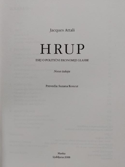 Knjiga Hrup je esej o politični ekonomiji glasbe, 167 strani. Prevzem v LJ ali po pošti/ poštnino plača kupec.