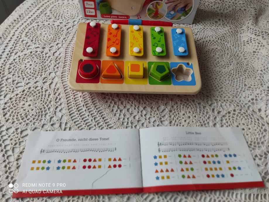 likov ali z igranjem ksilofona s priloženo paličico. Izdelek je narejen iz