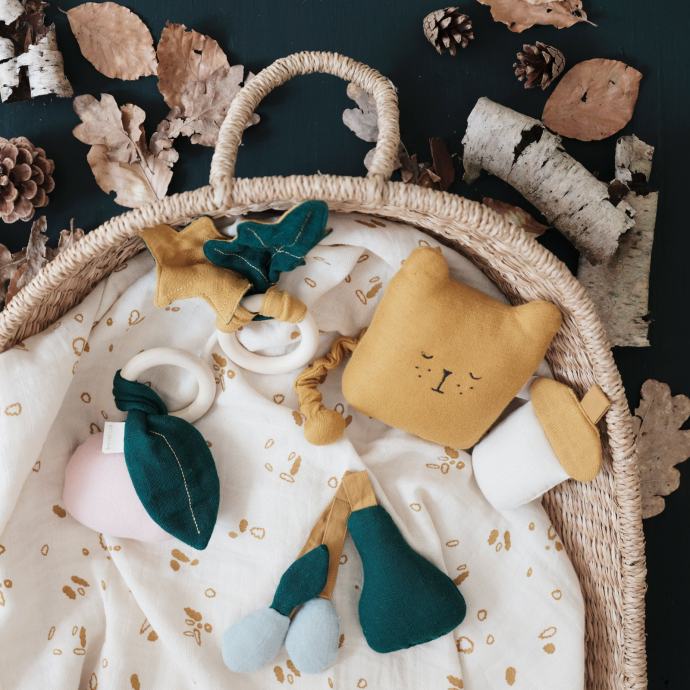 Material: 100% GOTS certificiran ekološki bombaž, polnilo iz koruznih vlaken, glasbena škatlica