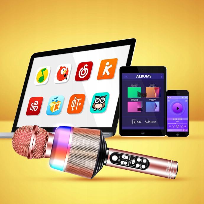 Popestrite vsako zabavo in ustvarite nepozabne trenutke s USB aku. 1200mAh Bluetooth SD karaoke mikrofonom z zvočnikom in RGB LED osvetlitvijo. Ta večnamenski mikrofon je popolna rešitev za vse ljubitelje petja, ki si želijo uživati v svojih najljubših pesmih kjerkoli in kadarkoli. Z zmogljivo baterijo kapacitete 1200mAh in brezžično Bluetooth povezavo vam omogoča več ur neprekinjenega delovanja in preprost prenos pesmi z različnih naprav, kot so telefoni, tablice ali računalniki.Vgrajen visokokakovostni zvočnik zagotavlja jasno in močno reprodukcijo zvoka, medtem ko elegantna RGB LED osvetlitev poskrbi za pravo karaoke vzdušje na vsaki zabavi. Mikrofon podpira tudi SD kartice, kar pomeni, da lahko predvajate pesmi neposredno iz svoje kartice, ne da bi potrebovali dodatno napravo. Preprosto ga napolnite prek USB kabla in uživajte v brezskrbni uporabi kjerkoli.Bluetooth povezava: Preprosto povežite mikrofon z vašim telefonom, tablico ali računalnikom in predvajajte pesmi brezžično.1200mAh polnilna baterija: Zmogljiva baterija omogoča dolge ure neprekinjenega delovanja.Vgrajen zvočnik: Kakovosten zvočnik zagotavlja odličen zvok brez dodatnih naprav.RGB LED osvetlitev: Ustvarite popolno zabavno vzdušje s spreminjajočo se barvno osvetlitvijo.Podpora za SD kartice: Predvajajte glasbo neposredno iz SD kartice brez potrebe po drugih napravah.Prenosen in lahek: Idealen za uporabo doma, na zabavah, v naravi ali med potovanjem.Enostavno polnjenje prek USB: Priloženi USB kabel omogoča hitro in enostavno polnjenje.S tem Bluetooth karaoke mikrofonom lahko postanete zvezda vsake zabave, kjerkoli se nahajate. Njegova vsestranskost, zmogljivost in zabavne funkcije poskrbijo za nepozabno izkušnjo petja in zabave.Bluetooth zvočnik, vgrajen v naš mikrofon, vam bo omogočil povezavo s telefonom in predvajanje vaše najljubše glasbe.Visoka kakovost zvoka – zvok ima funkcijo zmanjševanja hrupa, zato je zvok zvenel izjemno čisto, lahko pa je prilagoditi tudi glasbo v ozadju, kakovost nizka v visokih tonov.Zasnova mikrofon ima za župana drugačno idejo.Mikrofon ima možnost utišanja vokalov v glasbi v ozadju. Samo pritisnite en gumb in naprava bo dejansko izvedla celoten postopek!! – Zahvaljujoč tem možnostm nam ni treba predvajati posebnih karaok različic naših najljubših pesmi!Oglejte si druge razpoložljive barve mikronov naših dražbah!Naprava ima vgrajen zvok , ki omogoča odlično ojačitev glasu. Vgrajena baterija omogoča večurno delovanje naprave brez priključka na napajanje.Z zmanjšanjem skupine , ker je vaš glas zvenel čist in brez popačenj, nastavitve nizkih, visokih tonov in odjeka pa bodo vaše petje popeljale v novo dimenzijo.Napravo je mogoče povezati s telefonom prek Bluetootha in snemati glas – idealno kot orodje za intervjuje, dodaten snemalnik zvoka pri snemanju videa, za radijske poddę ali prenos v živo.Naš mikrofon je opremljen z najboljšimi aplikacijami za karaoke! Vrzite se v glasbeno norijo in zapojte!Brezžični mikrofon s FUNKCIJO BLUETOOTH omogoča jasno povezavo s telefonom, tablico in SMART TV z operacijskima sistemoma Android in IOS.Mikrofon hkrati predvaja glasbo in nanjo prekriva naše petje. Popoln za petje na potovanjih, v avtu, snemanje instrumentov, intervjuje in druge dogodke v živo.Multifunkcijski gumbi vam omogočajo prilagajanje glasnosti mikrofona in zvoka, vklop funkcije odmeva, preklapljanje med pesmimi na telefonu in snemanje vašega glasu!Mikrofon lahko preko BLUETOOTH je primeren za telefone, tablice in SMART TV z operacijskim sistemom ANDROID in IOS.Čas je za gledanje karaok na telefonu, tabli ali TV zavesi.Mikrofon daje LED party osvetlitev, ki bo ustvarila edinstveno vzdušje med vašo karaoke zabavo!Karaoke mikrofon je večnamenska naprava – lahko deluje tudi z zvočnikom BLUETOOTH za predvajanje glasbe.Možnost snemanja vašega petja vam omogoča, da priredite svoje najljubše pesmi.Vključite svojo najljubšo glasbo s kartico TF in zapojte z vašimi najljubšimi izvajalci.Ko vstavite pomnilniško kartico v napravo, lahko posnamete celoten zvok in ga predvajate! Ujemite svoje neverjetne izvedbe svojih najljubših pesmi!Frekvenčni razpon: 100 Hz-20 kHzČas igranja: 6-8 rojČas polnjenja: 2 uriMoč: 3WKapaciteta baterije: 1200MAHIzhodna moč: DC5VBarva: roza