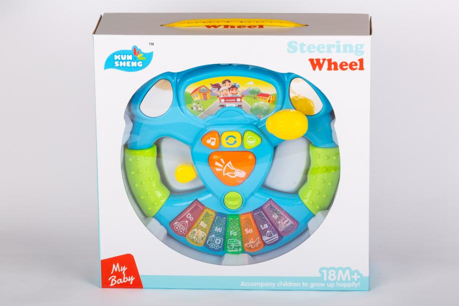 Na volanu so tipke, ki s pritiskom oddajajo zvoke različnih vozil, opremljena vsaka s svojo barvo lučke, ki zasveti ob pritisku tipke.