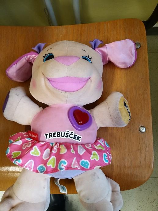 fine motorike skrbijo svetleči srček, tačke, trebušček ter uho, ki se odzivajo na dotik in spodbujajo koordinacijo oko-roka.K.razvoju čutil pripomorejo mehka, plišasta zasnova kužka, svetleč srček ter zabavne pesmice. Z igro se bodo malčki spoznavali s črkami, števili, štetjem, deli telesa, barvami, čustvi in še mnogo več.Primerno od 6 mesecev do 3 let.